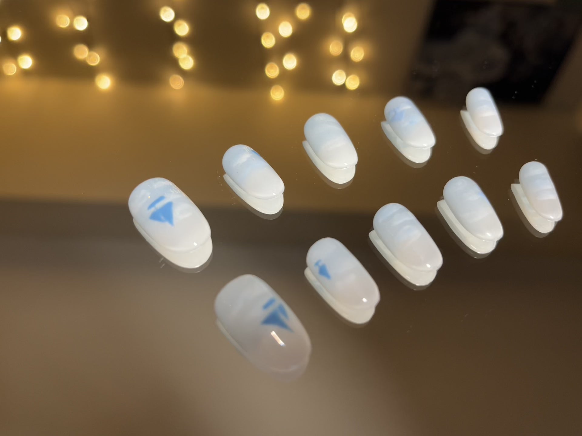 Each set of press on nails comes with : Instructions, Double-sided adhesive sticky tabs and nail glue, Nail file, Cuticle Orange Stick.